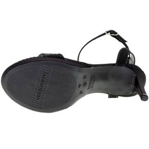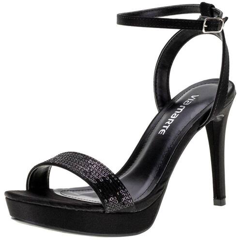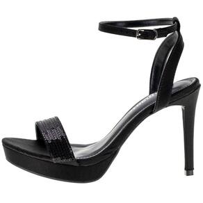 A Sandália Feminina Meia Pata Via Marte é confeccionada em Cetim com aplicação em lantejoula, fechamento por fivela, palmilha em PU e solado em borracha antiderrapante com salto traseiro de doze centímetros e salto frontal de três centímetros.