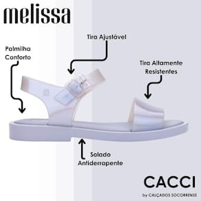 Com a renomada marca Melissa, conhecida por sua qualidade e design inovador, essas sandálias são perfeitas para quem busca uma opção versátil e estilosa para os momentos de lazer e descontração.