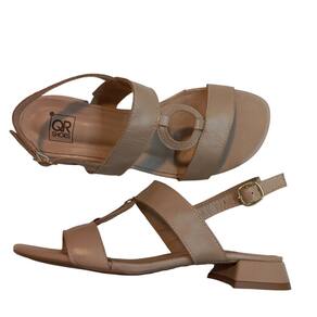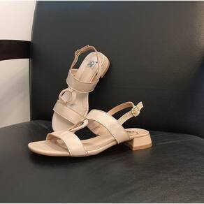 Sandália feminina nude bege confeccionada em couro, com salto grosso de 3 cm. Seu cabedal é composto por duas tiras com fivela. Solado em borracha TR antiderrapante para maior segurança em diferentes tipos de solo.