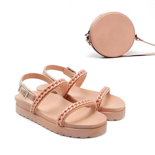 Aproveite todos os momentos com estilo e conforto, usando o Kit de Sandália + Mini Bag da Valentina Kister. A composição da sandália em PVC garante leveza e durabilidade. Além disso, o formato ergonômico, o solado tratorado e o desing com fivela permite um calce fácil e prático, com total maciez aos pés. Já a bolsa é confeccionada em PVC, que proporciona maior qualidade e resistência, também possui alça transversal e ajustável. Aposte no Kit em combinações para eventos casuais, passeios e no dia a dia.