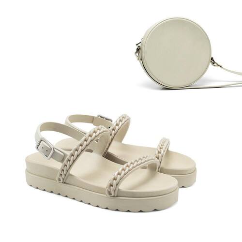 Aproveite todos os momentos com estilo e conforto, usando o Kit de Sandália + Mini Bag da Valentina Kister. A composição da sandália em PVC garante leveza e durabilidade. Além disso, o formato ergonômico, o solado tratorado e o desing com fivela permite um calce fácil e prático, com total maciez aos pés. Já a bolsa é confeccionada em PVC, que proporciona maior qualidade e resistência, também possui alça transversal e ajustável. Aposte no Kit em combinações para eventos casuais, passeios e no dia a dia.
