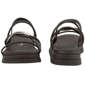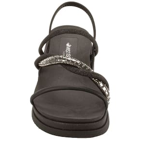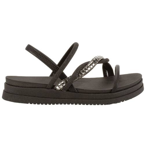Sandália Feminina Papete FlatForm Casual Dia a Dia com Strass Tiras Trançadas Calce Fácil Mississipi MB302 - Preto - 36