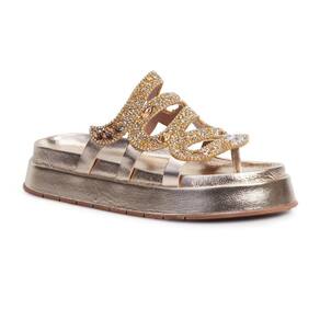 Sandália Feminina Papete Flatform Metalizada Strass Pedraria - 37 - Amarelo Ouro