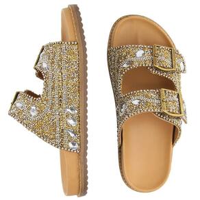 Sandália Feminina Papete Flatform Pedraria Brilho Fivela - 33 - Amarelo Ouro