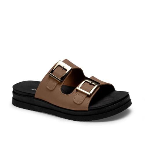 Sandália Feminina Papete Mississipi. Ideal para o dia a dia, essa papete apresenta design moderno com duas fivelas de enfeite que garantem um toque sofisticado ao calçado. A palmilha macia oferece conforto prolongado, aliviando o impacto a cada passo, enquanto a sola antiderrapante proporciona estabilidade em diferentes superfícies.