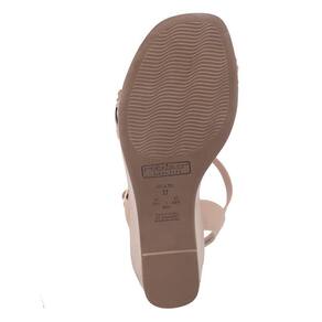 Salto: anabela 5,5cm de altura traseiro e 1cm de altura frontal, solado com frisos para maior segurança.