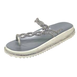 A parte superior do chinelo é onde a verdadeira beleza reside. Ela é revestida com um material metalizado de alta qualidade, conferindo um brilho sutil e um aspecto luxuoso ao calçado. As tiras são projetadas para proporcionar um ajuste seguro e confortável, enquanto adicionam um toque de glamour ao design.