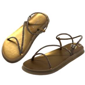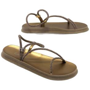 O destaque dessa sandália são as tiras brilhantes e ajustáveis. As tiras, feitas de um material durável e de alta qualidade, envolvem o pé de maneira confortável. Cada tira é cuidadosamente decorada com strass brilhantes, que capturam e refletem a luz, adicionando um toque de glamour e sofisticação ao design.