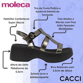 Se você ama um visual moderno sem abrir mão do conforto, essa sandália da Moleca é perfeita para te acompanhar em qualquer ocasião! Com design inspirado no estilo pescador, ela traz tiras médias super macias e um solado plataforma leve, garantindo um toque fashion e um caminhar estável. Disponível em versões de cores lisas e metalizadas, para você escolher o que mais combina com seu estilo!
