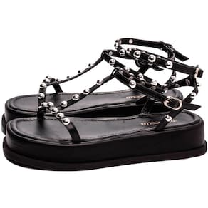 Material: Napa Preto Enfeite: Fivela de Ajuste na Cor Prata Apliques na cor Prata Forro: Napa na Cor Preto Palmilha: 8 mm de Espessura, Espuma em EVA, Revestida em Napa Preto Plataforma: com 4 cm de Altura na parte de Tras e 3,5 cm de Altura na parte da Frente, Revestido em Napa Preto Solado de TR com antiderrapante na cor Preto.