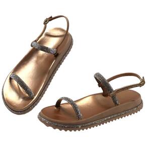 O destaque dessa sandália são as tiras adornadas com strass cintilantes. As tiras, feitas de um material durável e de alta qualidade, envolvem o pé de maneira confortável. Cada tira é cuidadosamente decorada com strass brilhantes, que capturam e refletem a luz, adicionando um toque de glamour e sofisticação ao design. Conta também com uma tira ajustável para deixar o calce mais fácil.