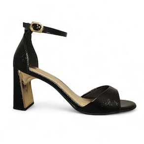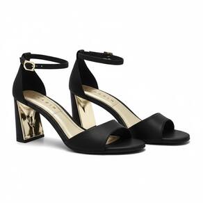 O salto bloco de aproximadamente 7,5 cm garante altura elegante com estabilidade e segurança ao caminhar. Seu acabamento dourado metalizado adiciona um toque glamouroso e moderno, realçando qualquer look com muito estilo.