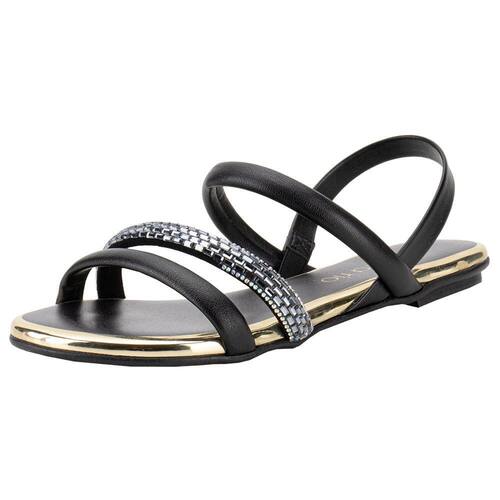 A Sandália Feminina Rasteira Beira Rio é confeccionada em Napa com detalhes em Strass, acabamento em costura, palmilha em PU macio e solado em borracha antiderrapante.