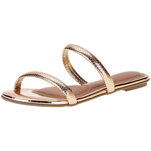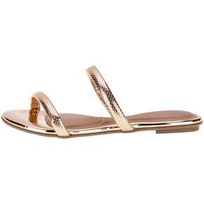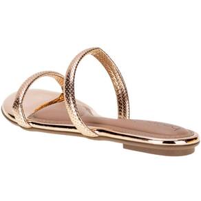 A Sandália Feminina Rasteira Beira Rio é confeccionada em material metalizado com tira pronta,  acabamento em costura, palmilha em PU e solado em borracha antiderrapante.
