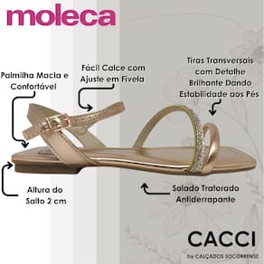 A Sandália Rasteira Moleca é a combinação perfeita de charme, conforto e praticidade! Seu design moderno apresenta tiras com acabamento brilhoso, que acrescentam um toque de glamour e sofisticação ao visual, sem abrir mão da leveza ideal para o dia a dia. Este modelo é a escolha certa para iluminar seus looks casuais, seja em um passeio descontraído ou em ocasiões especiais. O conforto inconfundível da Moleca garante pés bem acomodados durante todo o uso. Uma sandália versátil que combina com você e com todos os momentos da sua rotina!