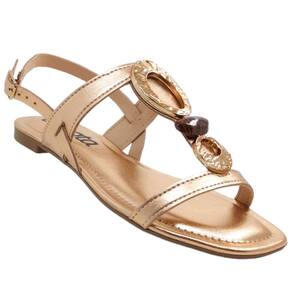 Sandália Feminina Rasteira Casual Dia a Dia Passeio Conforto com Pedraria Aplique Metalizado Dakota Y7982