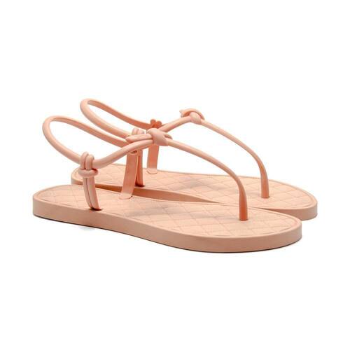 Sandália Feminina Rasteira Confortável Verão Tira Fina - 34 - Bege Claro