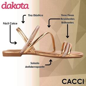 Praticidade e sofisticação em um só calçado! A Sandália Rasteira Dakota é perfeita para quem busca um modelo estiloso e confortável para o dia a dia.