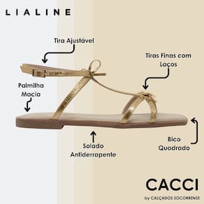 Design Encantador: Cada detalhe da sandália é meticulosamente trabalhado para criar um visual elegante. Os laços delicados adicionam um toque romântico, elevando o seu estilo a novas alturas.Conforto Inigualável: Desfrute de passos leves e confortáveis ao longo do dia, graças à palmilha macia e à construção ergonômica. A Lia Line prioriza o conforto sem abrir mão da moda.