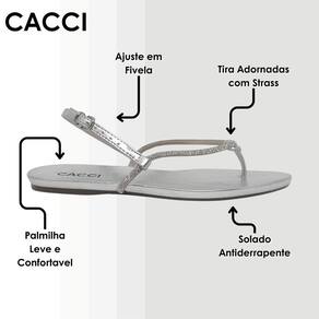 A Sandália Rasteira Cacci é a combinação perfeita de sofisticação e praticidade. Com tiras adornadas em strass, ela traz um brilho delicado que valoriza qualquer look, seja para o dia a dia ou ocasiões especiais.