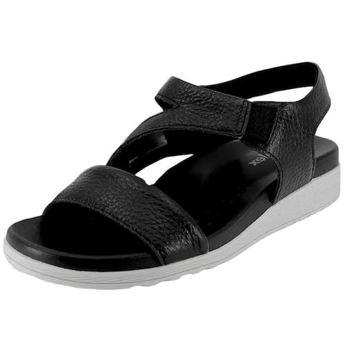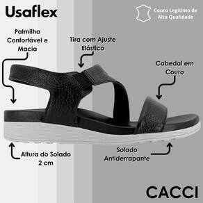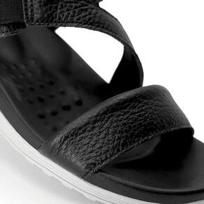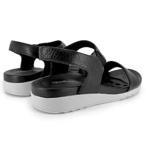 Sandalia plataforma com cabedal em couro relax catalano na cor preto. O modelo possui tecnologia Calce Fácil, com modelagem inteligente em adaptar o calçado a ergonomia dos pés.