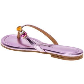 A Sandália Feminina Rasteira Vizzano é confeccionada em material metalizado com aplicação de strass, acabamento em costura, palmilha em PU e solado em borracha antiderrapante.