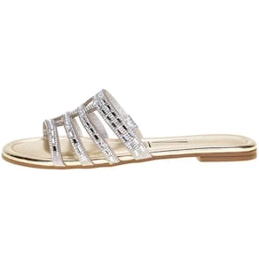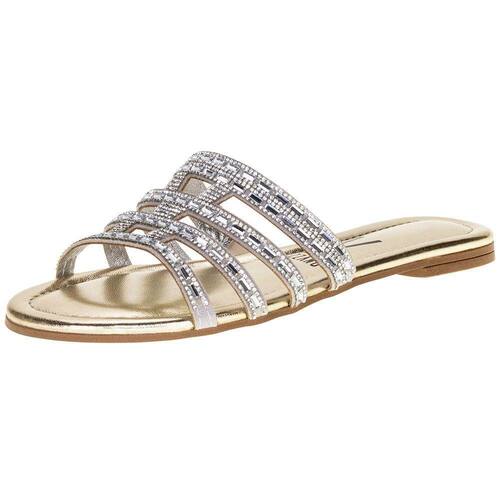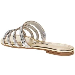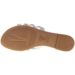 A Sandália Feminina Rasteira Vizzano é confeccionada em Gaspea Pronta com detalhe em metalizado london, acabamento em costura, palmilha em PU e solado em borracha antiderrapante.