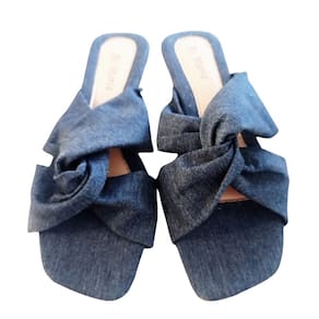 Sandália Feminina Rasteirinha Em Jeans Conforto Moda Casual - Azul Royal - 36