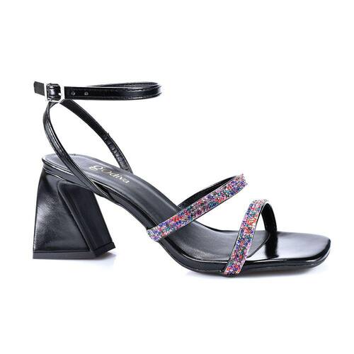 Sandália Feminina Salto Alto com detalhes em strass colorido e fivela regulável, para maior conforto no caminhar para seus pés.