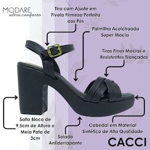Elegância com conforto: Salto bloco alto e meia pata, que combinam altura com a leveza de um caminhar confortável.