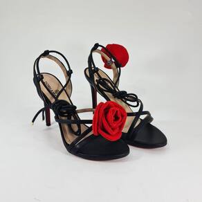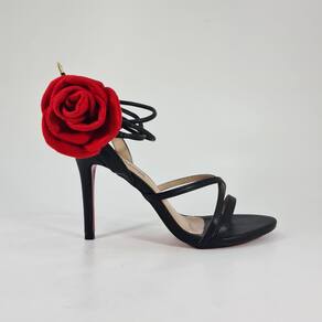 Sandalia de salto alto fino fashion linda, possui enfeite de rosa vermelha que é removível, pode usar como acessório da roupa também. Essa sandália ficou linda com esse salto fino de 12cm no número 41, a sola vermelha trazendo elegancia e poder ao look.