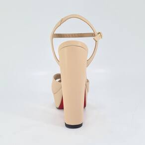 Sandália Feminina Salto Alto Grosso Bege Amendoa Sola VermelhaLindo modelo de sandália em bege, material muito confortável e bonito.Possui um salto alto poderoso de aprox 16cm no número 41, possui meia pata de aprox 4cm, para fechar esse lindo modelo tem a sola vermelha. A tira que prende no calcanhar possui elástico oque é perfeito para quem possui o tornozelo mais grosso.Essa sandália vai te fazer muito poderosa! Compre logo a sua antes que acabe seu número, pois a quantidade de pares é bem limitada.Sandália Feminina Salto Alto Dom&Amazona Numeração Especial Grande
