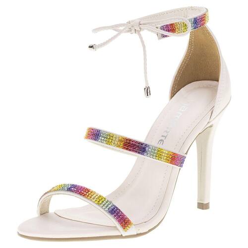Para brilhar e ARRASAR!A Sandália Feminina Salto Alto Via Marteé toda confeccionada em Nobuck com tiras finas coloridas e metalizadasque são pura sofisticação, graças às aplicações dos strass coloridos. Sua palmilha é feita de Pu proporcionando mais flexibilidade e maciez em cada passo. O solado é todo em borracha extremamente leve com um salto fino que mede aproximadamente onze centímetros. O glam fica por conta da amarração em tira. A elegância e o toque de cor estarão garantidos para seus looks com esse modelo incrível, garanta já a sua.