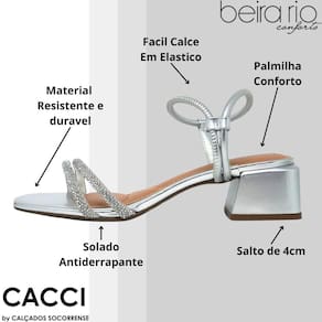 O acabamento metalizado confere um toque de sofisticação ao modelo, adicionando um brilho sutil que destaca a feminilidade da sandália. Seu cabedal é cuidadosamente confeccionado para garantir o ajuste perfeito aos pés, proporcionando conforto ao longo do dia. Além disso, o solado emborrachado oferece aderência e segurança em diversos tipos de superfícies.