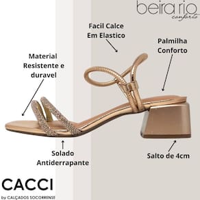 O acabamento metalizado confere um toque de sofisticação ao modelo, adicionando um brilho sutil que destaca a feminilidade da sandália. Seu cabedal é cuidadosamente confeccionado para garantir o ajuste perfeito aos pés, proporcionando conforto ao longo do dia. Além disso, o solado emborrachado oferece aderência e segurança em diversos tipos de superfícies.