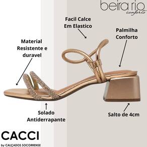 O acabamento metalizado confere um toque de sofisticação ao modelo, adicionando um brilho sutil que destaca a feminilidade da sandália. Seu cabedal é cuidadosamente confeccionado para garantir o ajuste perfeito aos pés, proporcionando conforto ao longo do dia. Além disso, o solado emborrachado oferece aderência e segurança em diversos tipos de superfícies.