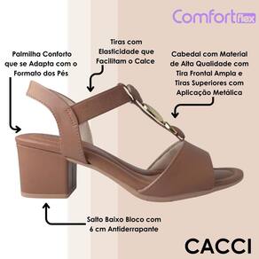 Esta sandália de salto baixo Comfortflex foi desenvolvida para quem busca praticidade combinada a um visual moderno que valoriza qualquer produção. Seu design versátil permite criar combinações que vão de looks casuais a composições mais refinadas, garantindo presença e conforto ao longo de toda a rotina. A estrutura estável, o salto que favorece o equilíbrio e a palmilha acolchoada fazem deste modelo uma excelente escolha para momentos de trabalho, compromissos ou passeios que exigem tranquilidade ao caminhar. Os detalhes metálicos aplicados no cabedal adicionam um toque atual, tornando o modelo ideal para quem deseja beleza sem exageros e funcionalidade em um único calçado.