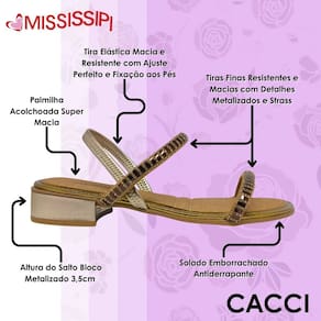 Garanta já a sua sandália de salto bloco médio brilho estilo Mississipi e arrase com conforto, brilho e elegância em cada movimento!