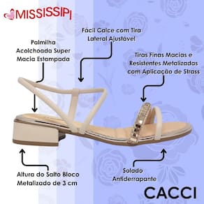 Com a Sandália Feminina Salto Baixo Mississipi, você estará pronta para arrasar com muito conforto e elegância. Não perca essa chance de adicionar essa peça única ao seu guarda-roupa!