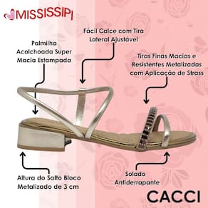 Com a Sandália Feminina Salto Baixo Mississipi, você estará pronta para arrasar com muito conforto e elegância. Não perca essa chance de adicionar essa peça única ao seu guarda-roupa!