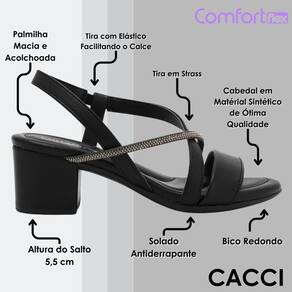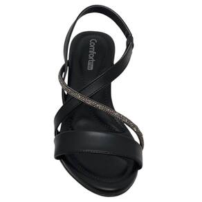 Sandália Feminina Salto Baixo Conforto Strass Comfortflex - Preto - 37