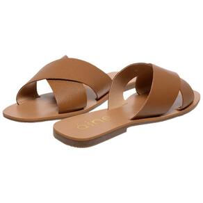 SANDALIA RASTEIRINHA TIRAS DE COURO CRUZADAS EM X LUDI CARAMELO - AINE STORE