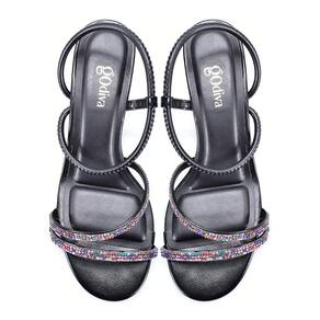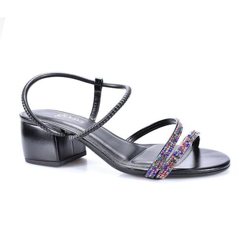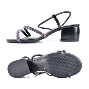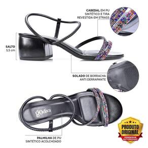 Sandália Feminina Salto Baixo Strass Colorido Godiva Preto 331630