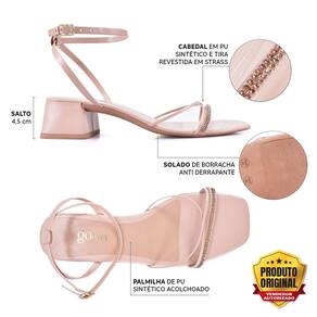 Sandália Feminina Salto Baixo Tira com Strass Godiva Pele 331417
