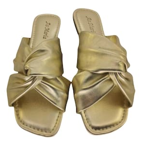 Sandália Feminina Salto Baixo Tiras Douradas Em Nó Fashion - Amarelo Ouro - 37