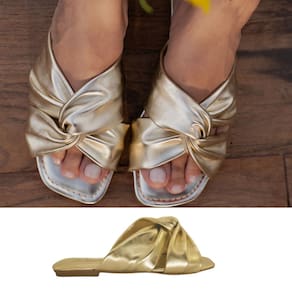 A rasteirinha Aracati  é elegante e versátil. Possui sola flat quadrada e suas tiras macias