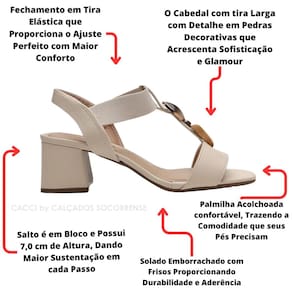 Com o design contemporâneo do salto bloco a sandália não só proporciona um toque moderno ao seu visual, mas também oferece estabilidade excepcional, permitindo que você desfile com confiança e conforto. Modelo super Versátil que combina diversos looks:
