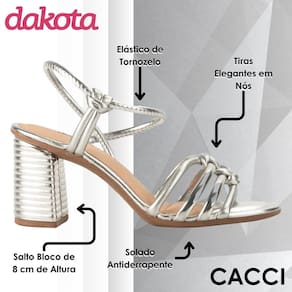 A Sandália Salto Médio Dakota é a definição perfeita de moda e conforto! Com um design sofisticado e cheio de personalidade, ela é ideal para quem deseja um toque moderno no look sem abrir a mão da praticidade.