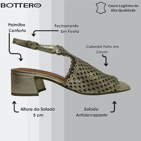 O salto médio blocado oferece a altura ideal para uso diário, mantendo o conforto em cada passo. A palmilha macia e o forro interno reforçam a sensação de bem-estar, mesmo durante longos períodos de uso. Um modelo para quem quer unir charme, conforto e estilo em um só produto.