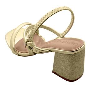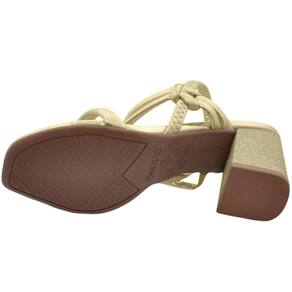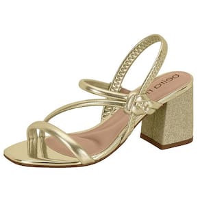 Design: Sandália com tiras finas e elegantes, em um deslumbrante tom dourado que destaca qualquer visual.